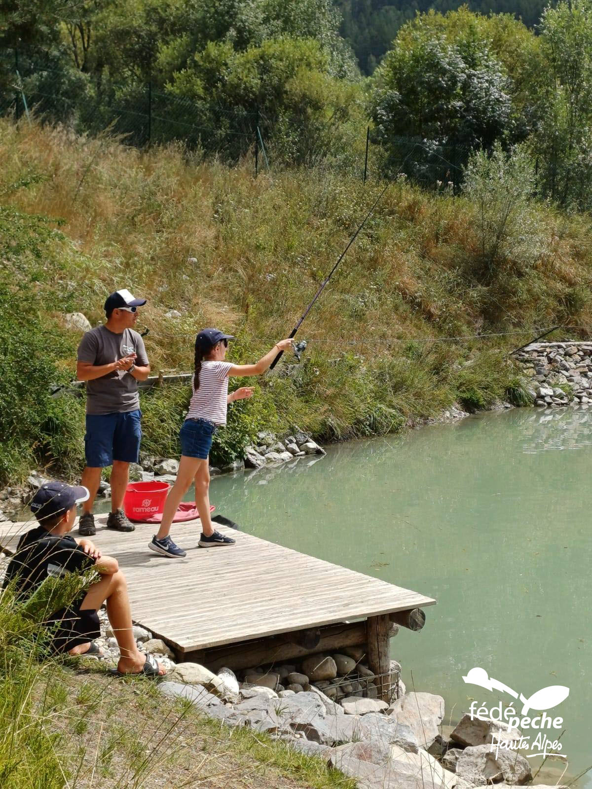 Encadré par un animateur (de la Fédé Pêche 05) et des bénévoles passionnés de l’association, les jeunes pêcheurs découvrent les bases de la pêche de manière ludique et sécurisée : connaissance du matériel, gestuelle, pêche et respect du poisson. Au bord de l’eau, entre rires et concentration, chacun vit le plaisir de sa première prise et la fierté de progresser.